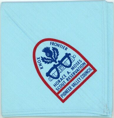Light blue neckerchief with blue/red camp logo, matching mid 1970s camp patch