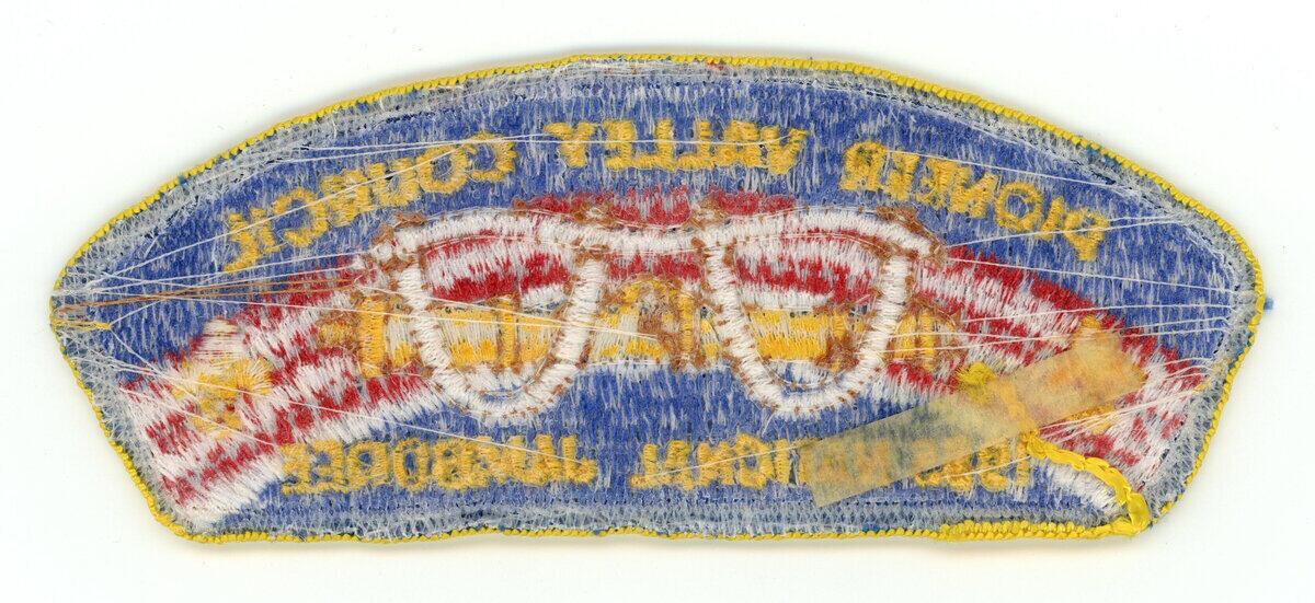 Yellow border, blue bkg with red/white band, yoke and Cannon, 2 FDL, 1985 National Jamboree
