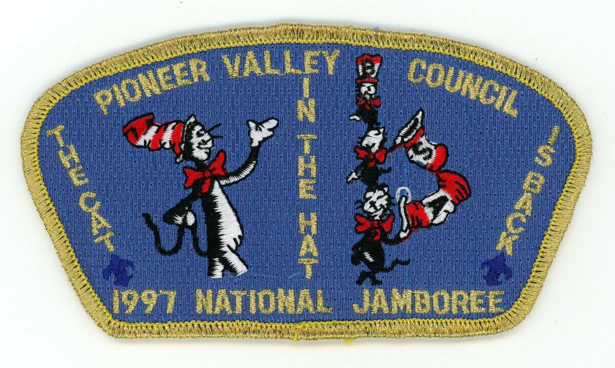 Gold mylar border, blue bkg, The Cat In The Hat, Thing One, Thing Two, Thing Three, 2 FDLs, BSA on the hats