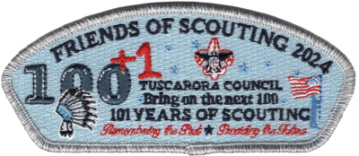 Friends of Scouting - "Bring on the Next 100", $365 Tier 3 Donation, Silver Mylar Border, 125 made. ISCA Code: Not Listed.
