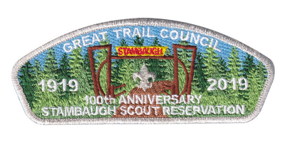 "1919 2019 | 100th Anniversary | Stambaugh Scout Reservation"; Part of a FDL 5-piece set (see "Additional Images")