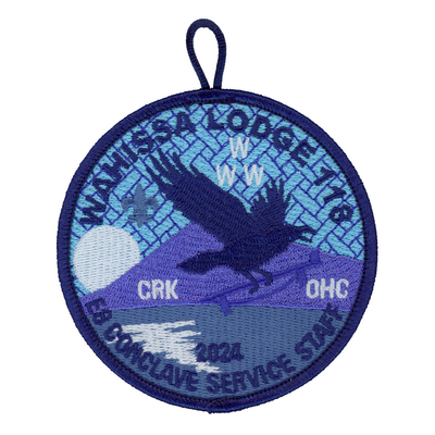 2024 E8 CONCLAVE SERVICE STAFF; DBL Flying Raven holding Peace Pipe