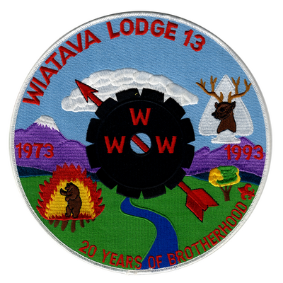 20th Anniversary; "20 Years of Brotherhood"; Black Cog in middle of patch has 12 teeth; 8"
