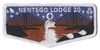 Through the efforts of the Delmont Lodge #43 of the Valley Forge Council, Lodge #20 was reorganized on June 22, 1957. The new name chosen by the membership was Nentego, a derivation of the name of one of the major Lenii Lenape tribes, which means, "People from across the water." Delmont Lodge inducted two youth from each district and the council professional staff to provide the initial core of Nentego Lodge. The Lodge totem is the Rockfish, which can be found in the Chesapeake Bay. The lodge colors are blue, for the water of the Chesapeake, and grey, for the Rockfish.