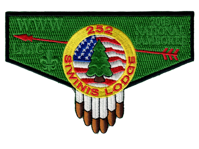 2005 National Jamboree; US Flag behind Pine Tree in middle circle; Green Background, text and FDL