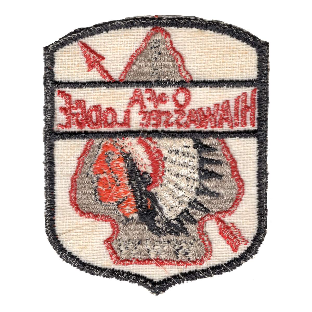 Silver arrowhead; ORG face, 5 RED lines in WHT headband