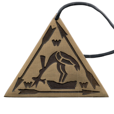 50th anniversary Vigil medallion. Brass triangle, dark engraved front, "50th Anniversary 1946-1996" stamped on reverse