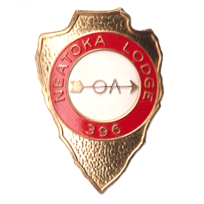 Arrowhead; GLD w/ RED & WHT circles; "Neatoka Lodge 396"