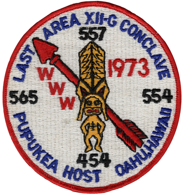 Host: Lodge 557 Pupukea; Location: Oahu, Hawaii; "XII-G" sewn in error (area is actually XII-H);